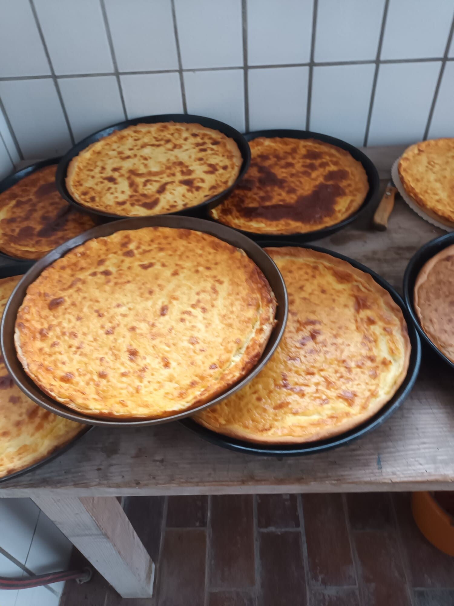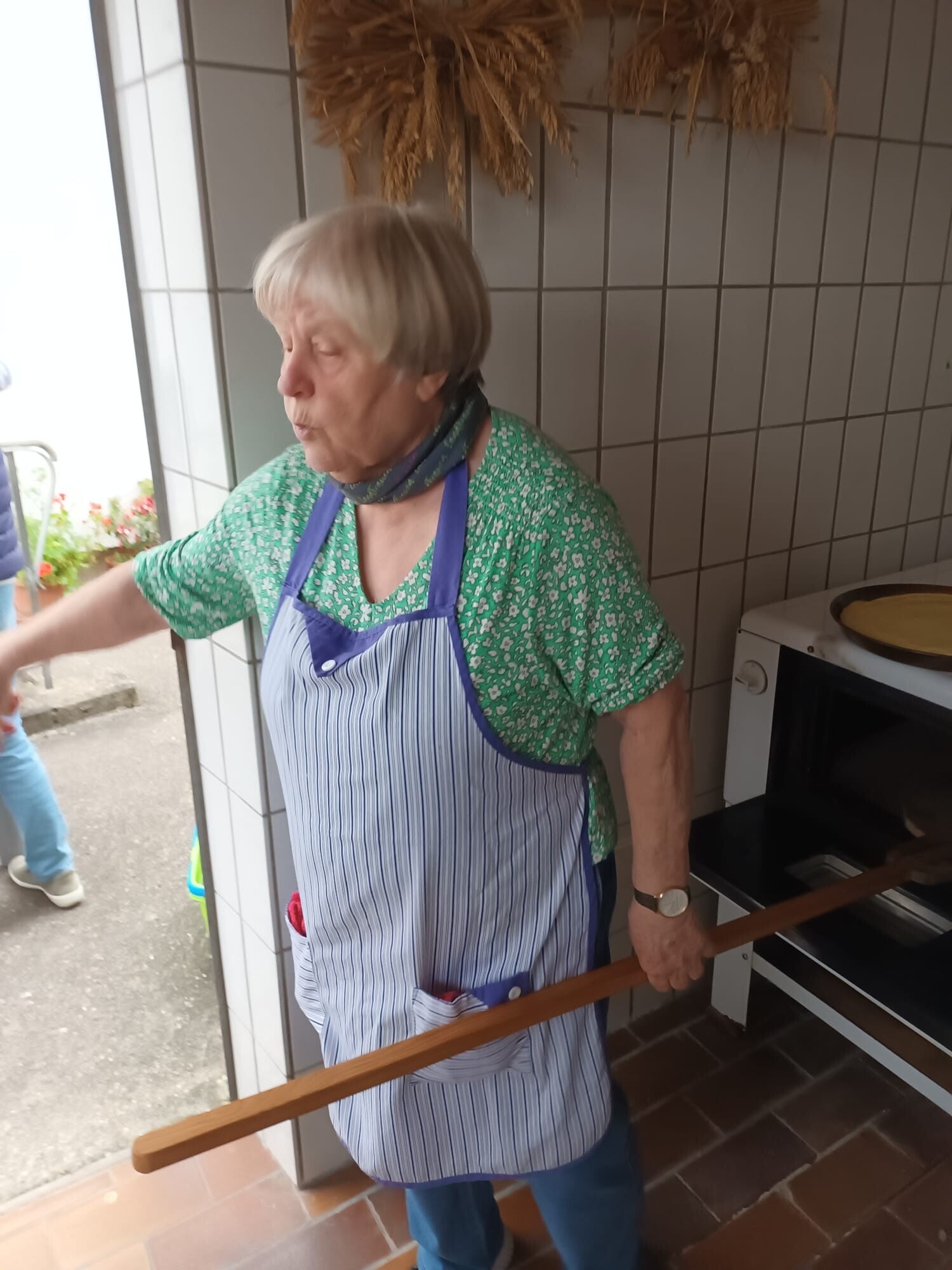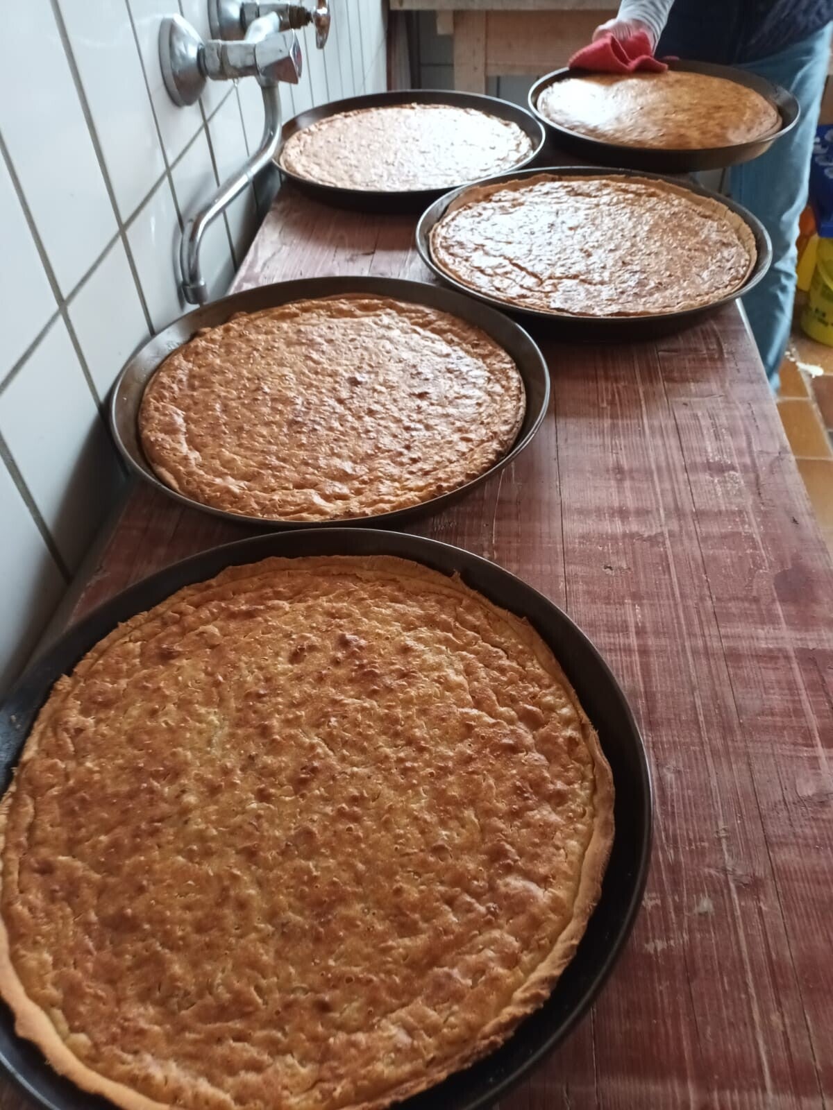 Salz- und Zwiebelkuchen werden für das Amsel Herbstfest gebacken; bei Brunhild Kübler Schiffrain.