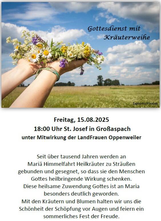 Gottesdienst mit Kräuterweihe zu Mariä Himmelfahrt
