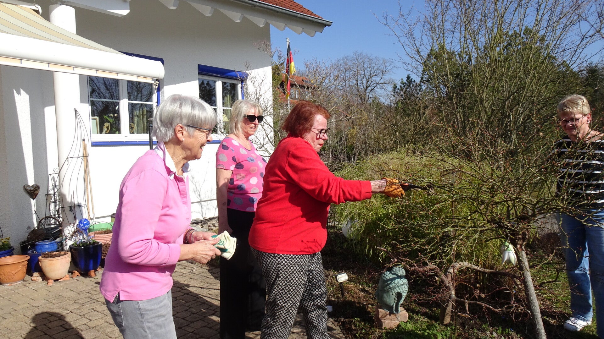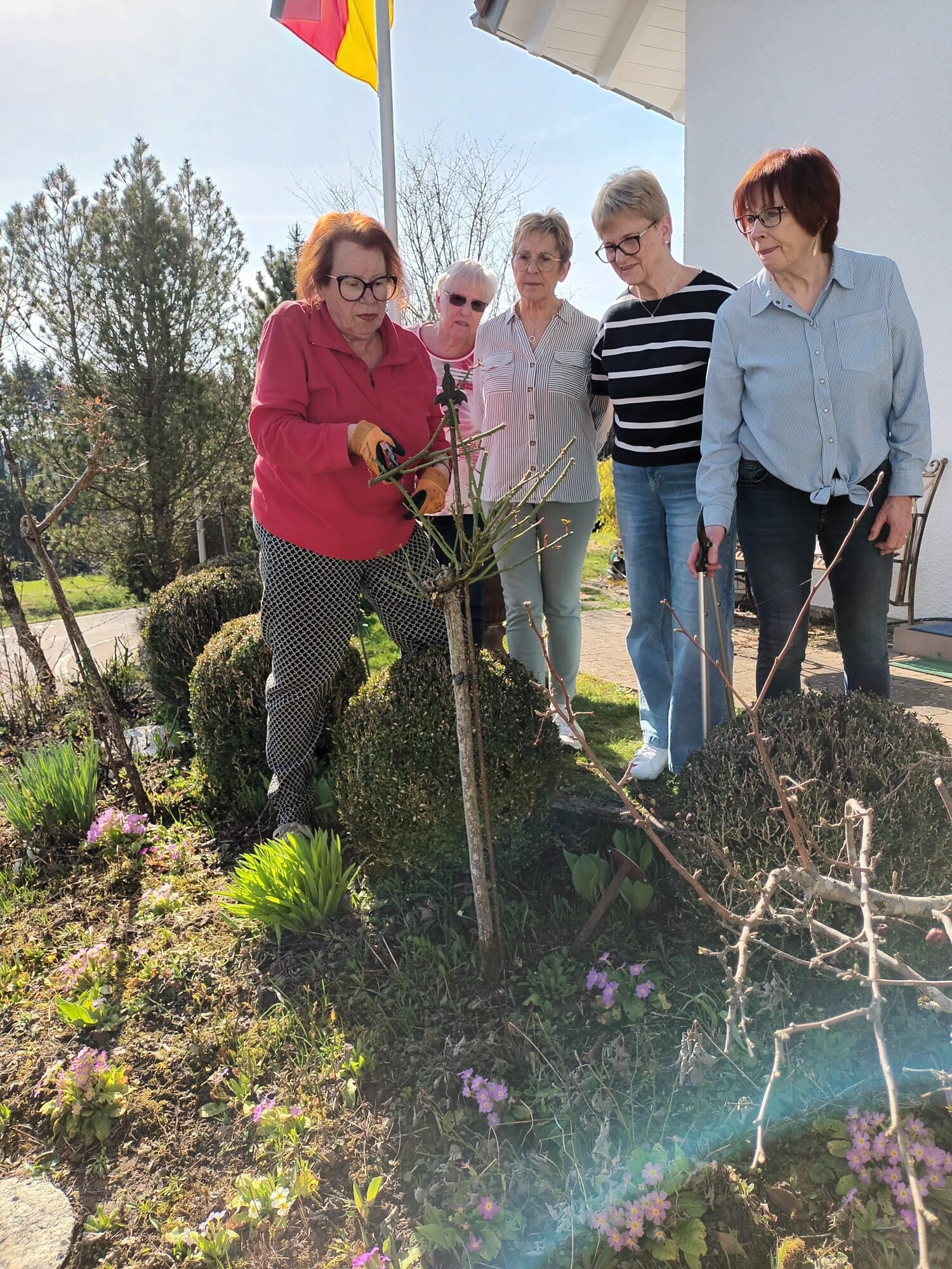 Am Samstag, den 07. März fand im Garten von Traudel Schützendorf unser beliebter Rosenschnittkurs mit Frau Rosemarie Held, Leiterin des Vereins der Rosenfreunde Heilbronn, statt. Zuerst wurde uns das für einen fachgerechten Rosenschnitt benötigte und richtig einzusetzende Handwerkszeug erläutert.